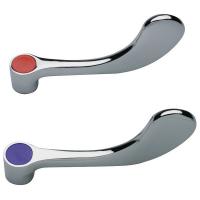 Handles, Wrist, Connection (In.) Screw, Material of Construction Cast Brass, Chrome Finish, Length (In.) 4, Number of Holes 1, Handle Type 4 In. Wristblade, Operation Manual, For Use With Food Service Faucets, ADA Compliant Yes, Includes Hot/Cold Index Caps, Philips Screws